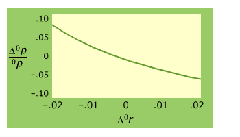 For example, suppose a portfolio has a duration of 5 years. That portfolio will appreciate about 5% for each 1% decline in rates. It will depreciate about 5% for each 1% rise in rates. It is as simple as that. Suppose a portfolio has a duration of –2 years. The portfolio's value will rise about 2% for every 1% rise in rates. It will decline about 2% for each 1% decline in rates. Approximation [2] is the primary reason people use duration. With a single number, it summarizes a bond or a portfolio's sensitivity to changes in interest rates. Typically, a bond's duration will be positive. However, instruments such as IO mortgage backed securities have negative durations. You can also achieve a negative duration by shorting fixed income instruments or paying fixed for floating on an interest rate swap. Inverse floaters tend to have large positive durations. Their values change significantly for small changes in rates. Highly leveraged fixed-income portfolios tend to have very large (positive or negative) durations. For portfolios whose cash flows are all fixed (for example, a portfolio